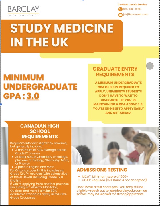 Do you plan to go to Medical school. Do you already have a degree from Canada or are you currently a Canadian Grade 12 high school student? Then there is STILL time to apply to be part of the class for Fall 2026. For application details get in touch https://barclayedu.com